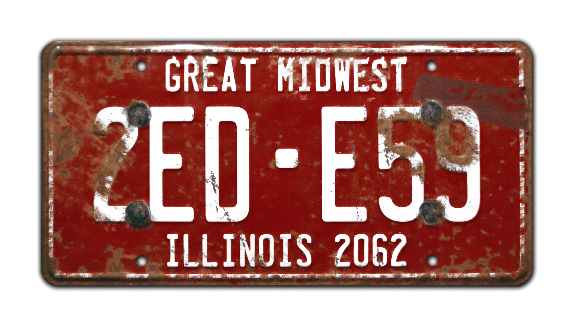 The 2ED-E59 License Plate is produced as seen on ED-E, the Eyebot Duraframe first found in need of repair at the Nash residence in Primm in the 2010 post-apocalyptic role-playing video game, Fallout: New Vegas. At this point, ED-E has a bumper sticker on its right side saying "My child is an HONOR STUDENT at Roosevelt Academy," a location in Fallout 3. On the opposite side of the bumper sticker, the 2ED-E59 license plate can be seen. The numbers are more worn and faded than the letters, making the letters "ED-E" more visible. This is elaborated on in the final DLC Lonesome Road, where the duplicate version mentions that the original had to stop in Chicago for repairs and visited a family along the way.