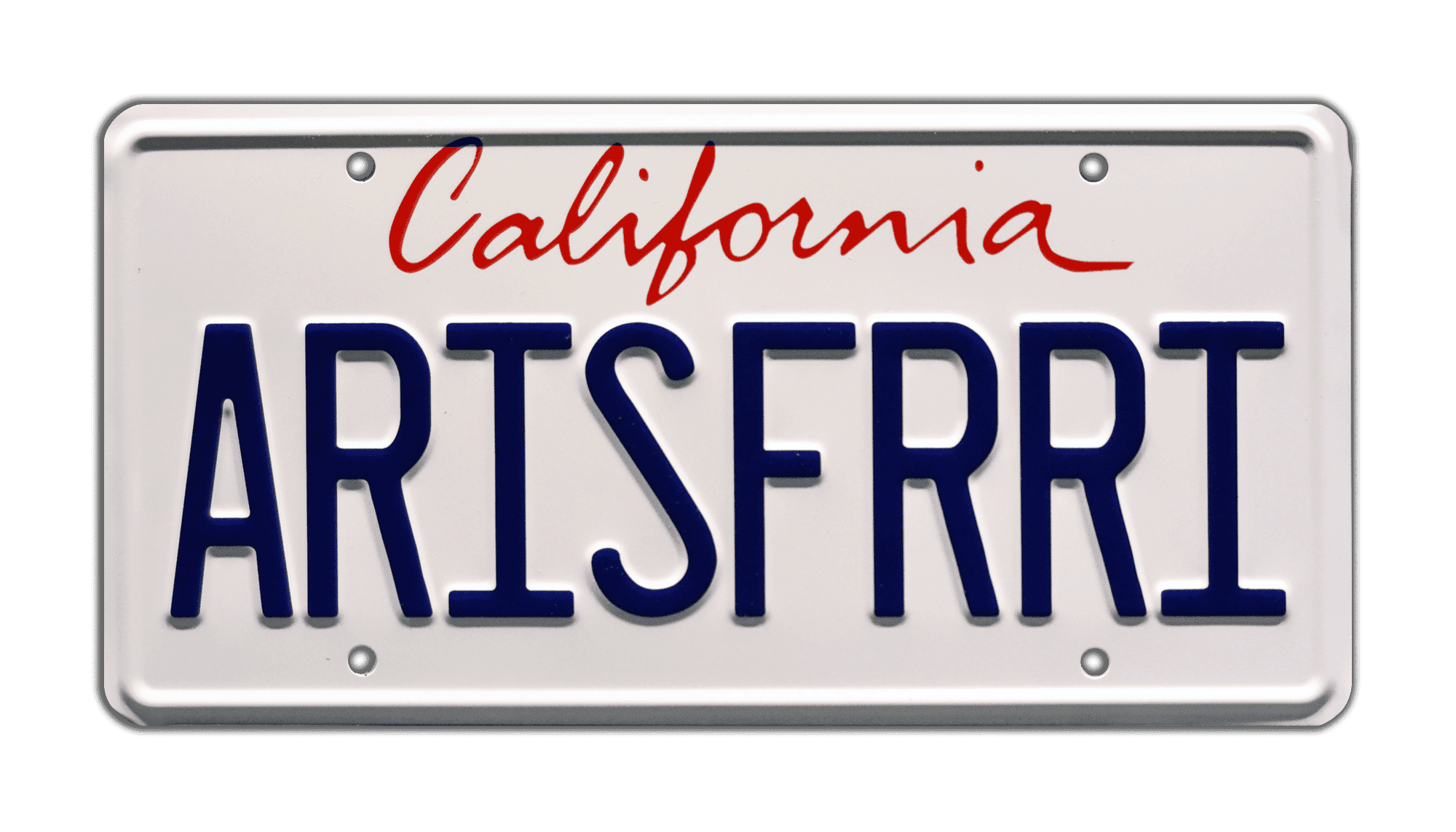 The white California ARIS FRRI License Plate is produced as seen on Ari Gold’s Ferrari F430 Spider in the television series Entourage. Ari Gold (played by Jeremy Piven) is the talent agent of Vincent Chase (played by Adrian Grenier) in the comedy drama series.