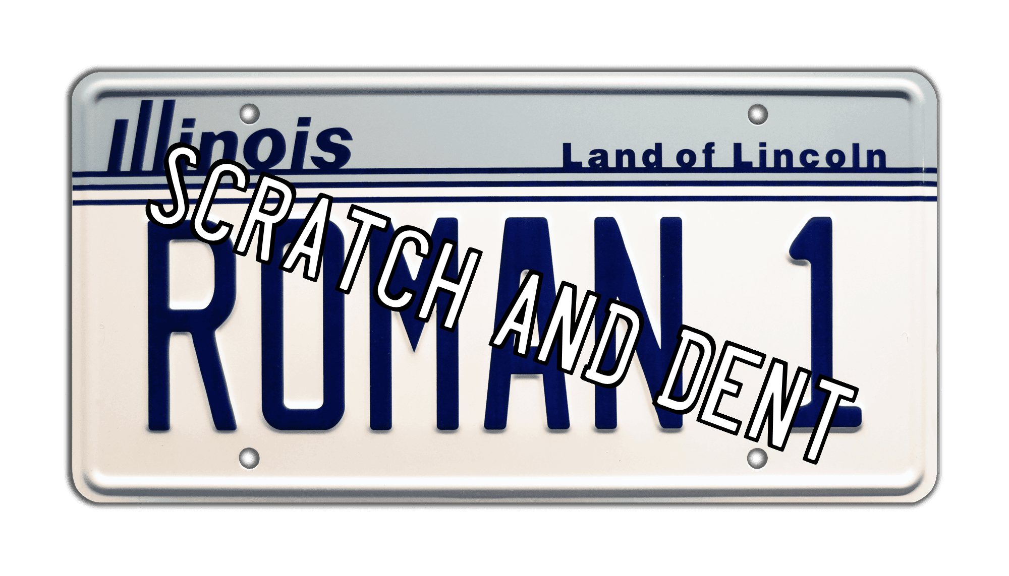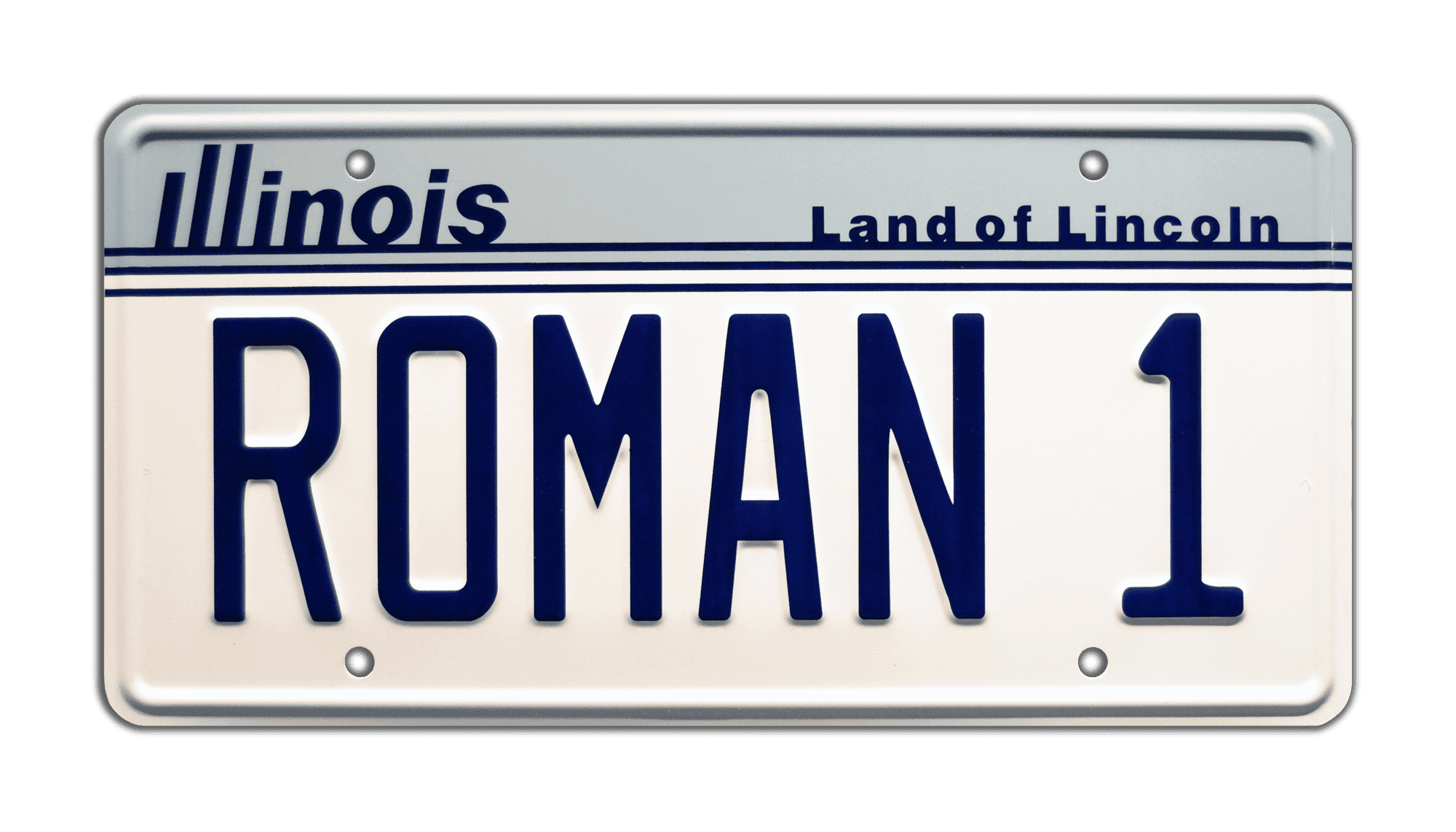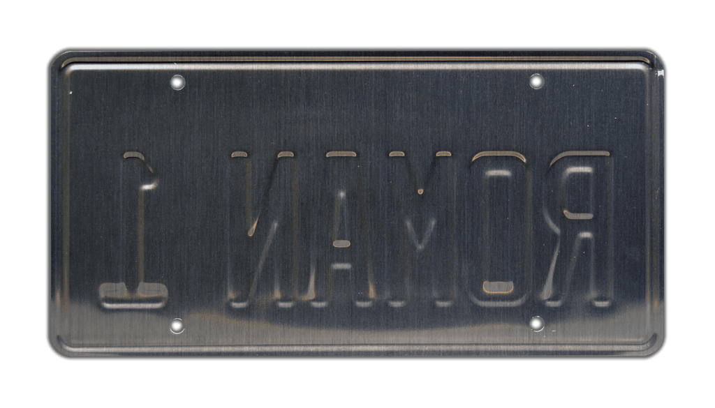 The white Illinois ROMAN 1 License Plate is produced as seen on the Mercedes driven by Dan Aykroyd’s character, Roman Craig, in the 1988 comedy film The Great Outdoors.